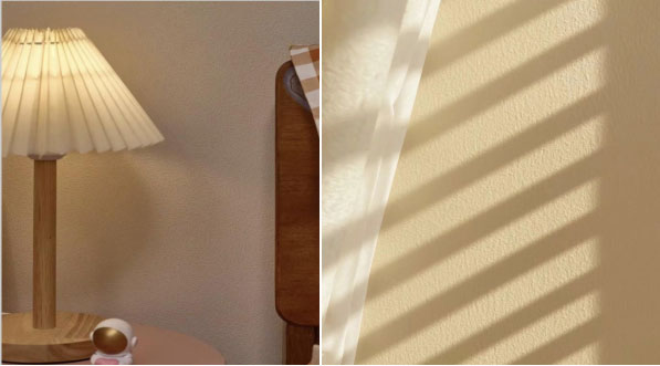 大面积需要两人同步施工,做阴角位时需要先做好一面墙干透后再做另一面墙,半干时不可以反复多次滚涂,否则纹理会比较粗糙。